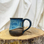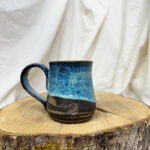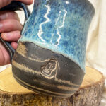 *Defect: This mug was just minding its own business when a fellow mug fell over in the kiln during a glaze fire and stuck to the side. When removing the glazed fallen mug, a chunk came out and revealed this marbled divot. I think it looks cool but it is a defect. Mug is still functional but dented “chunked out”.
