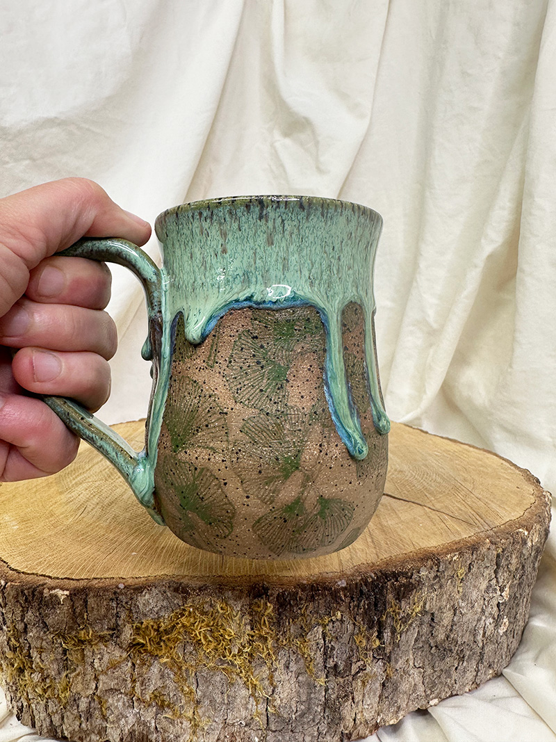· September 9, 2025Ginko Bliss(13 oz) $55.00 Handmade pottery, wheel-thrown mug. Pottery Information & Care » Sold SKU: m925-6 Category: Mugs Additional information Additional information Weight 18 oz Dimensions 6 × 5 × 6 in