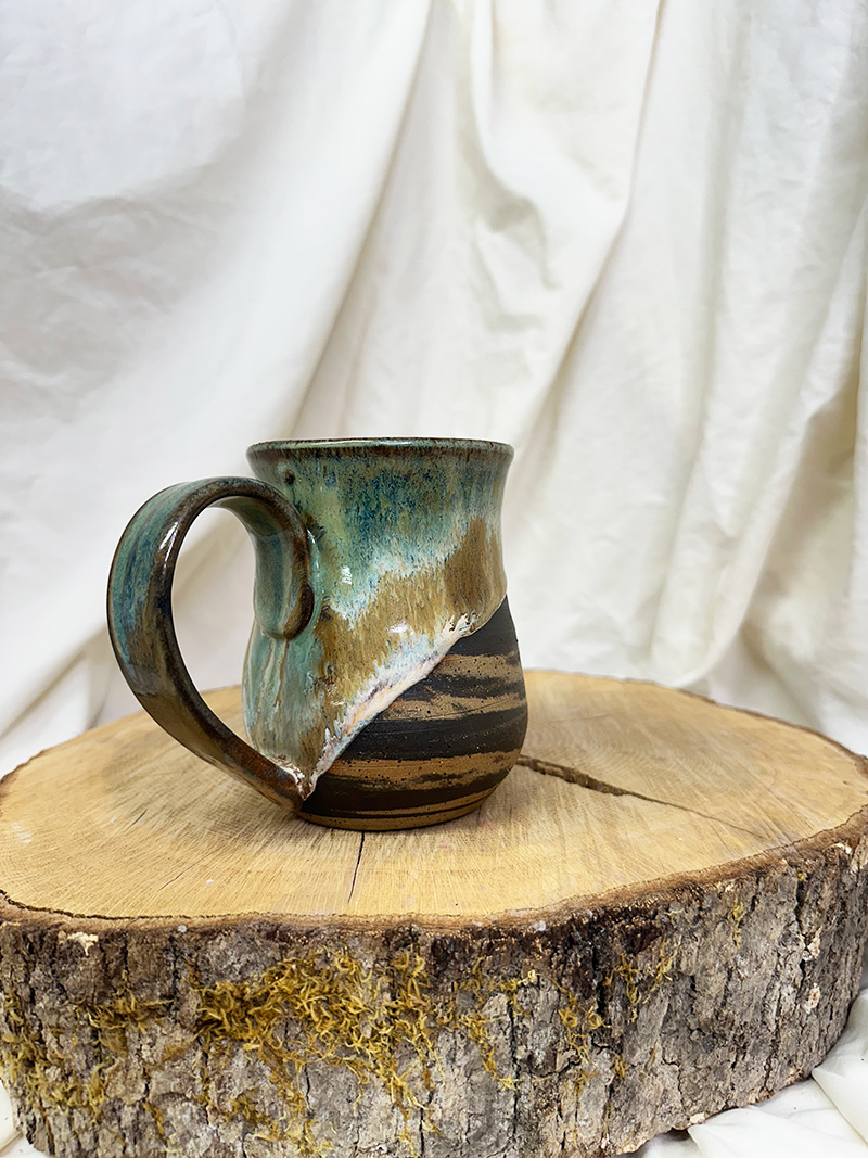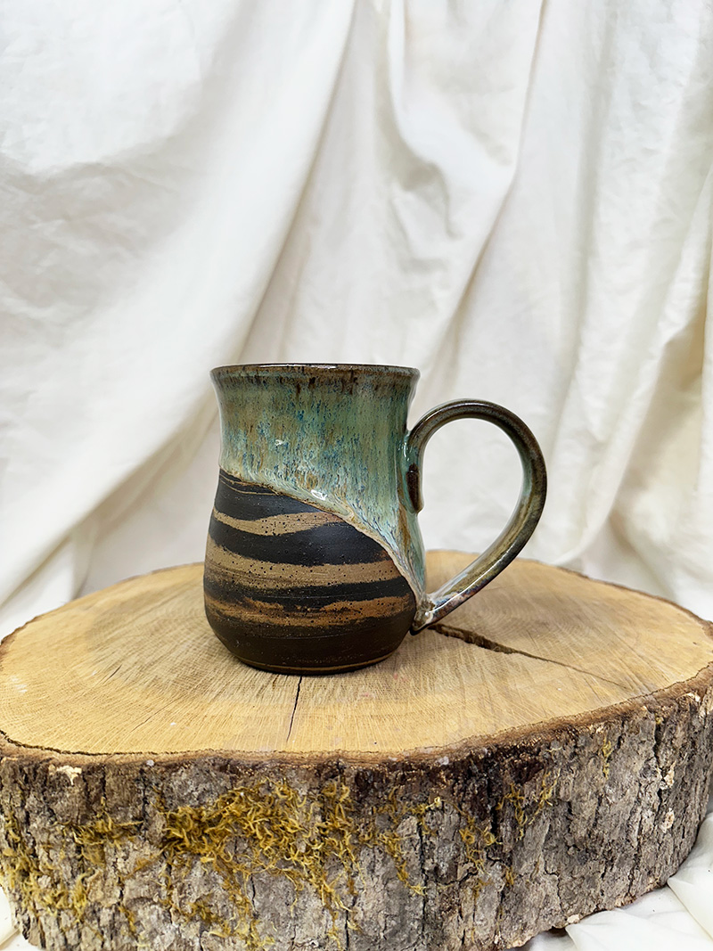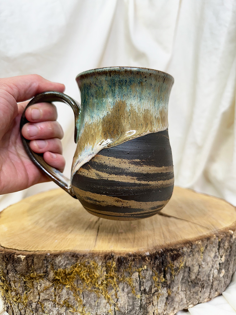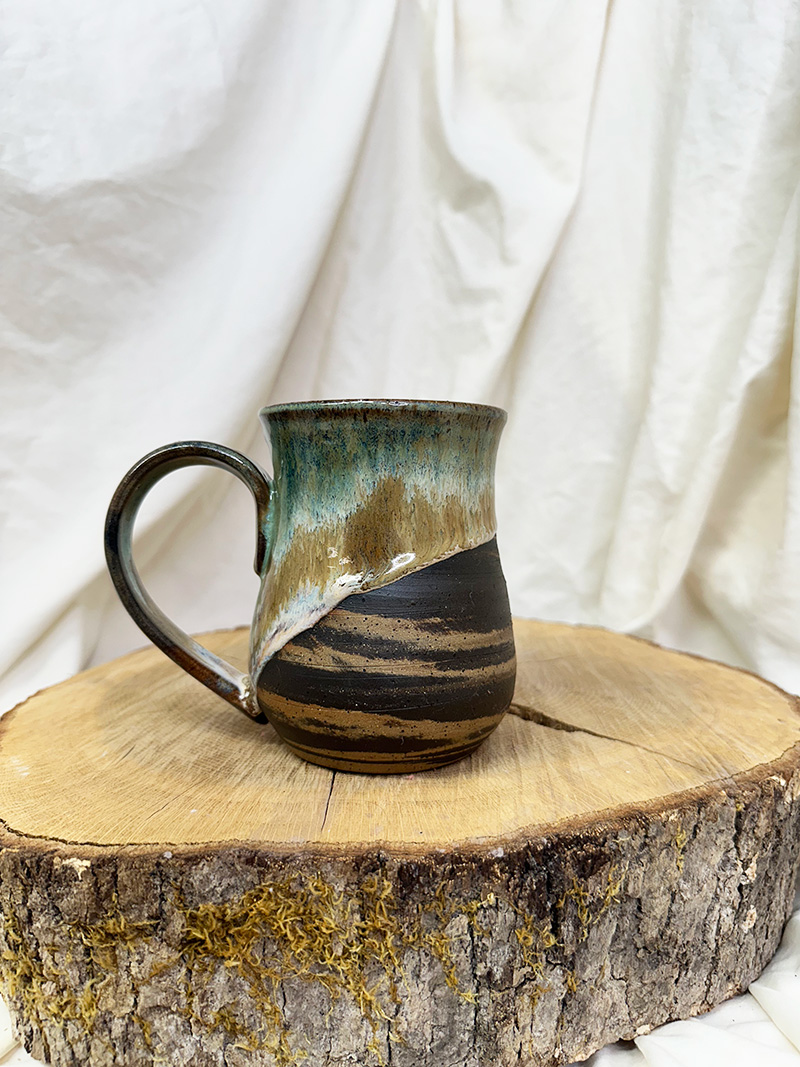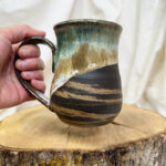 · September 9, 2025Mossy Lover(18 oz) $55.00 Handmade pottery, wheel-thrown mug. Pottery Information & Care » Sold SKU: m925-23 Category: Mugs Additional information Additional information Weight 16 oz Dimensions 6 × 5 × 6 in