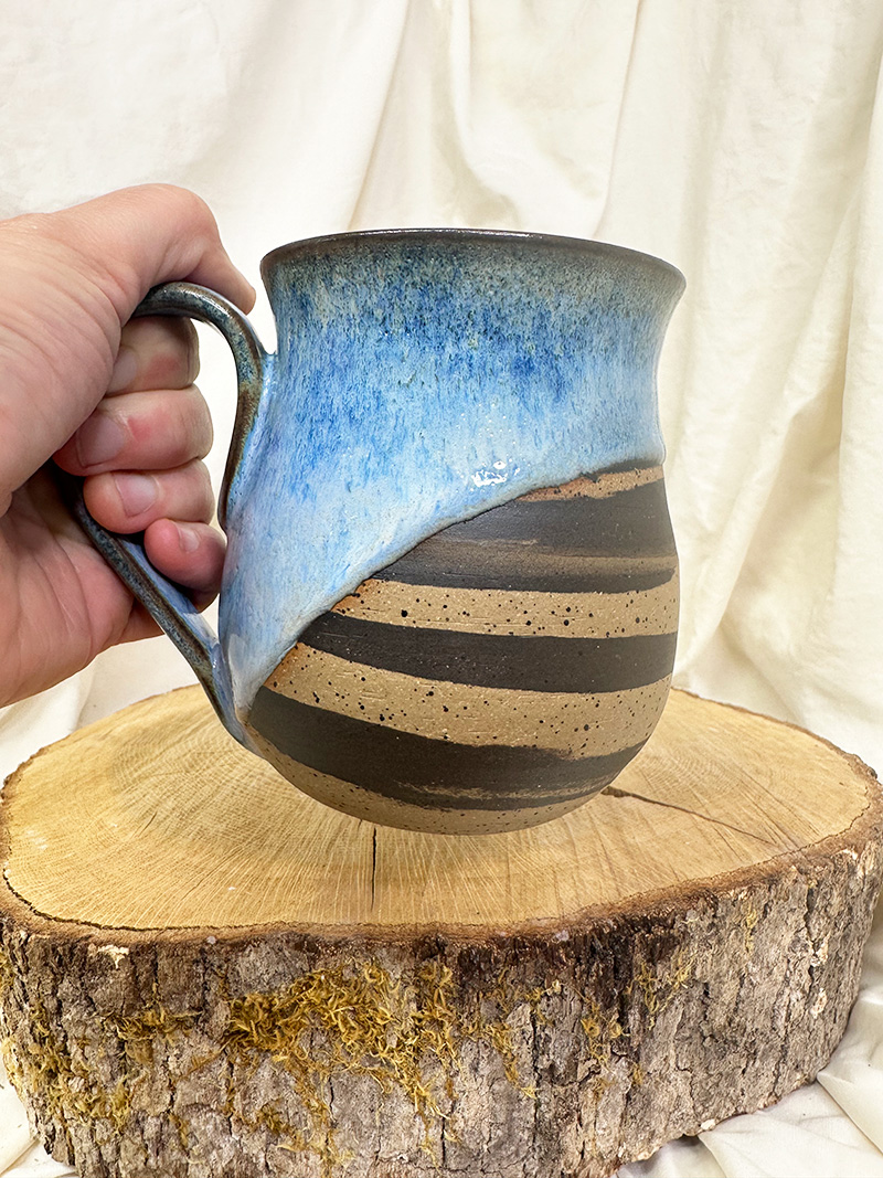 · September 9, 2025Skyview Blue(17.5 oz) $55.00 Handmade pottery, wheel-thrown mug. Pottery Information & Care » Sold SKU: m925-17 Category: Mugs Additional information Additional information Weight 17 oz Dimensions 6 × 5 × 6 in