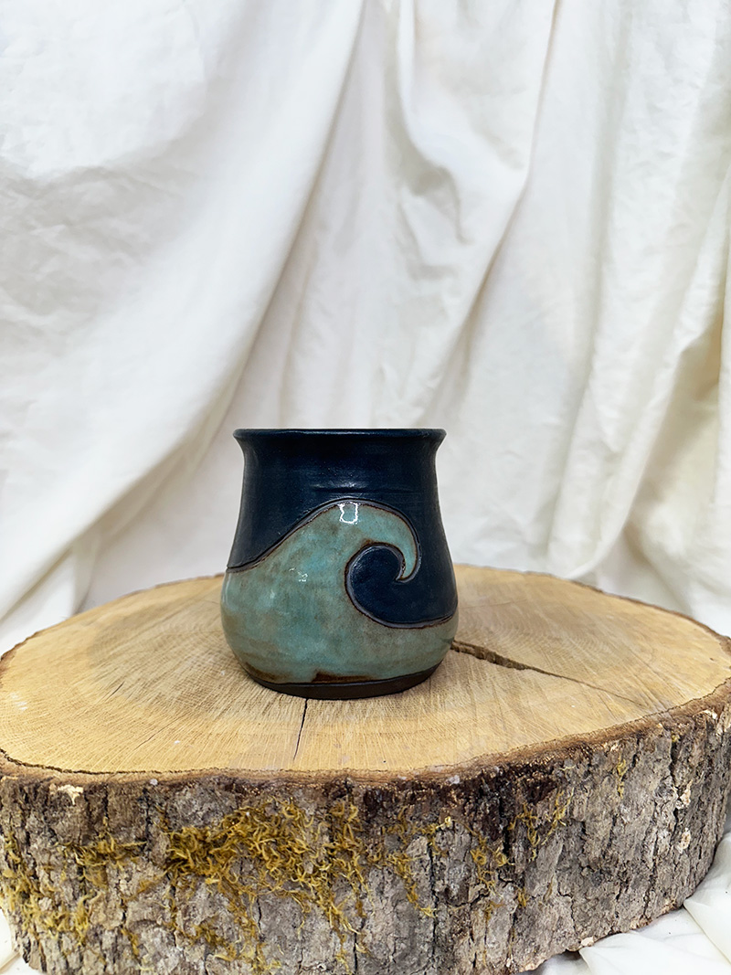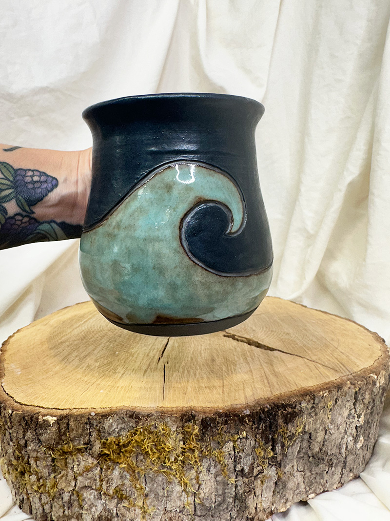 · September 9, 2025Smooth Wave(14 oz) $60.00 Handmade pottery, wheel-thrown mug. Pottery Information & Care » Sold SKU: m925-12 Category: Mugs Additional information Additional information Weight 17 oz Dimensions 6 × 4 × 6 in