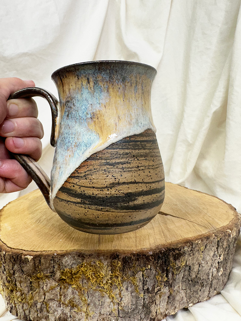 · September 9, 2025Sunset Lovers(18 oz) $55.00 Handmade pottery, wheel-thrown mug. Pottery Information & Care » Sold SKU: m925-20 Category: Mugs Additional information Additional information Weight 17 oz Dimensions 6 × 5 × 6 in