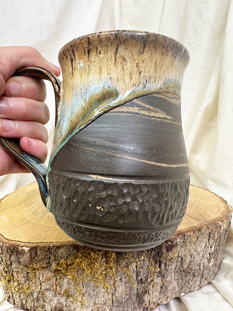 · September 9, 2025Textured Moss(17.5 oz) $55.00 Handmade pottery, wheel-thrown mug. Pottery Information & Care » Sold SKU: m925-25 Category: Mugs Additional information Additional information Weight 18 oz Dimensions 6 × 5 × 6 in